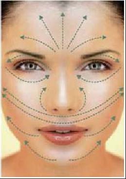 • Face skin along the cosmetic lines on the forehead, cheek and the lower jaw. The "THERAPY" mode, frequency 20 Hz should be used at the comfortable energy level; electrode can be re-arranged or moved along the skin with a speed of 1-2 cm per second from the middle of the face towards its periphery, remaining on the problematic zones for 3-5 minutes.